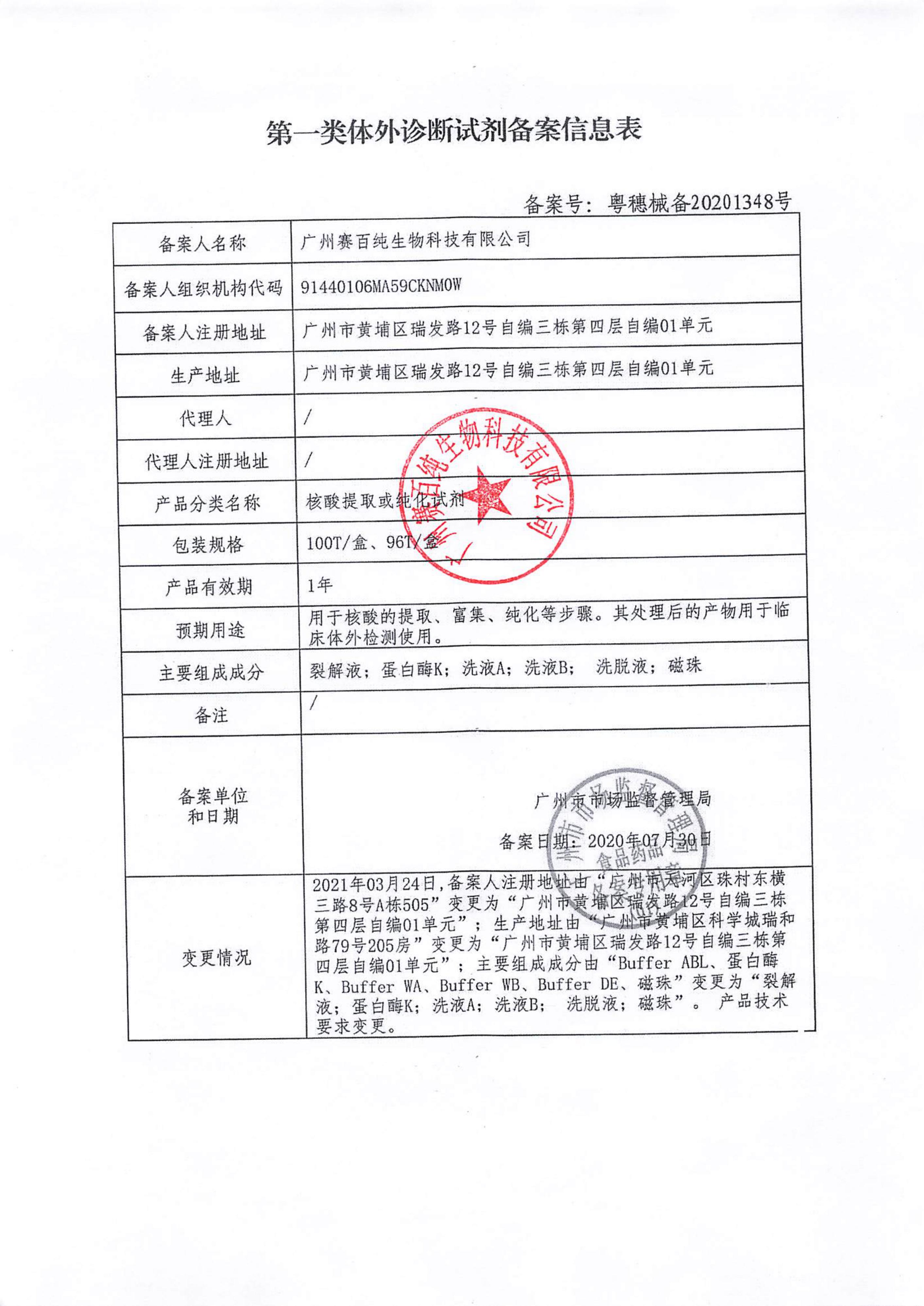 第一類體外診斷試劑備案信息表