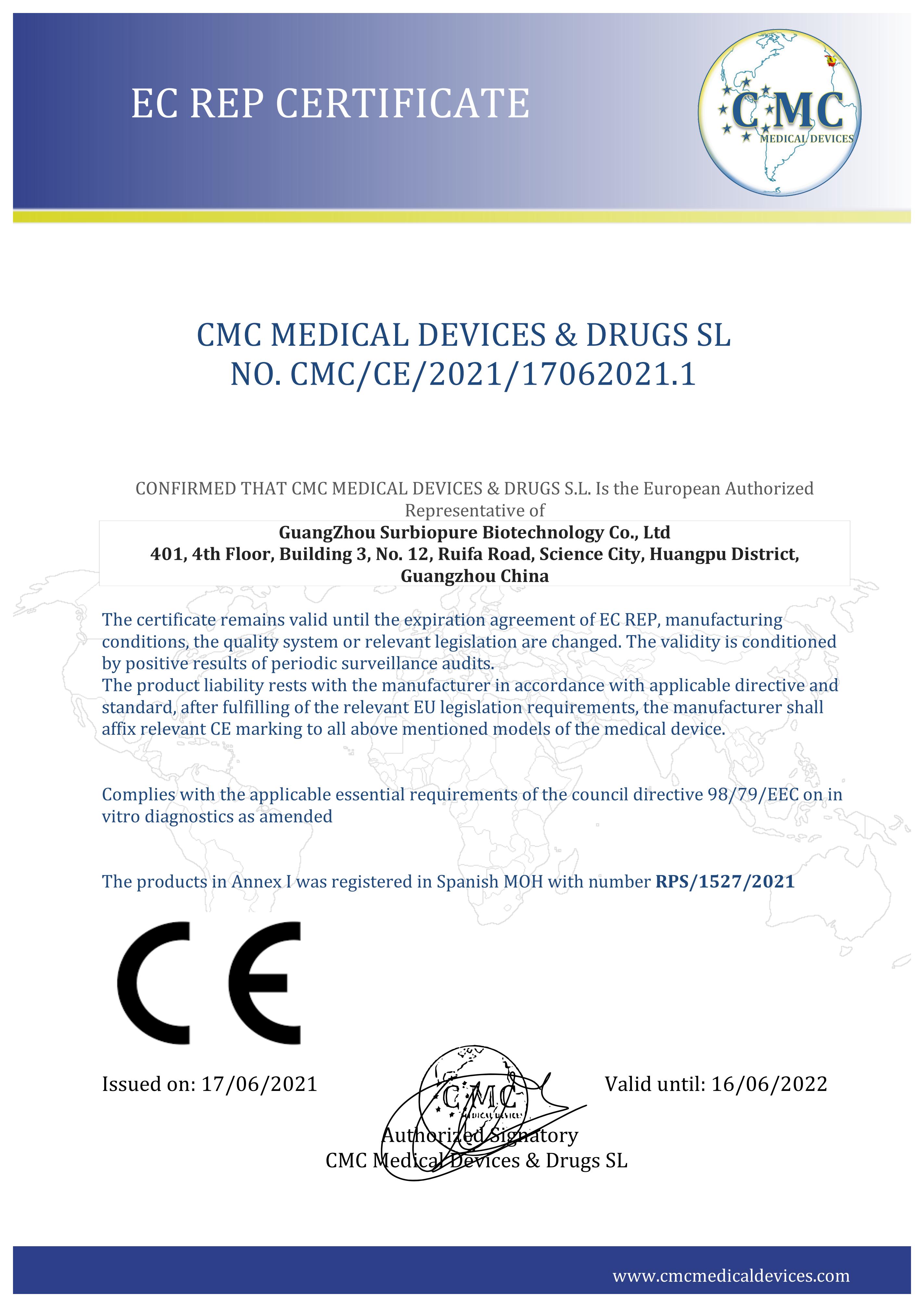 EC REP CERTIFICATE