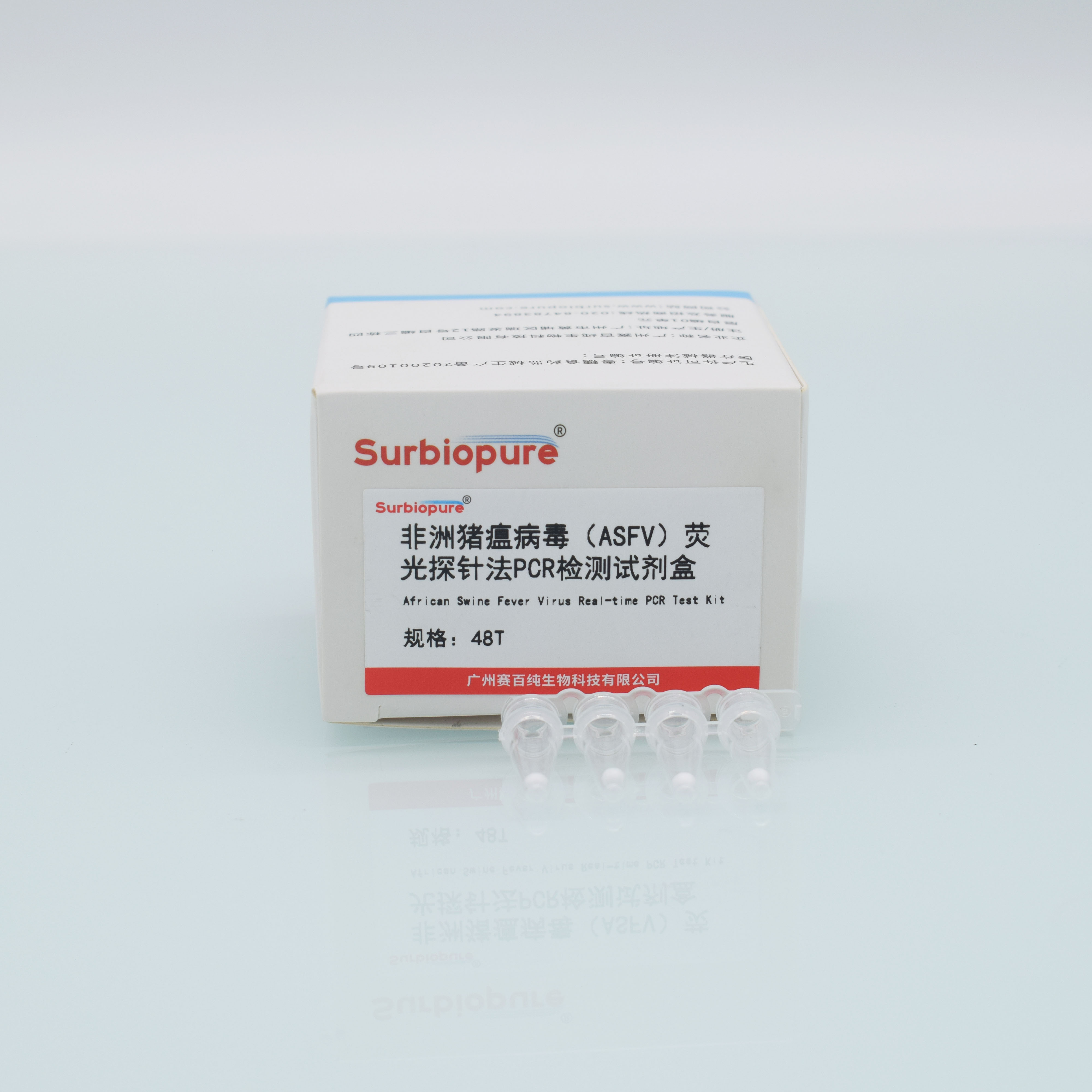 【產品名稱】 通用名稱:非洲豬瘟病毒(ASFV)熒光探針法 PCR 檢測試劑 英文名稱:African Swine Fever Virus Real - time PCR Test Ki 【包裝規格】 48頭份/盒 【預期用途】 用于全血、血清、血漿、淋巴結、脾臟、腎臟、扁桃體和肌肉、環境、飼料等樣品中 的非洲豬瘟病毒核酸的檢測。