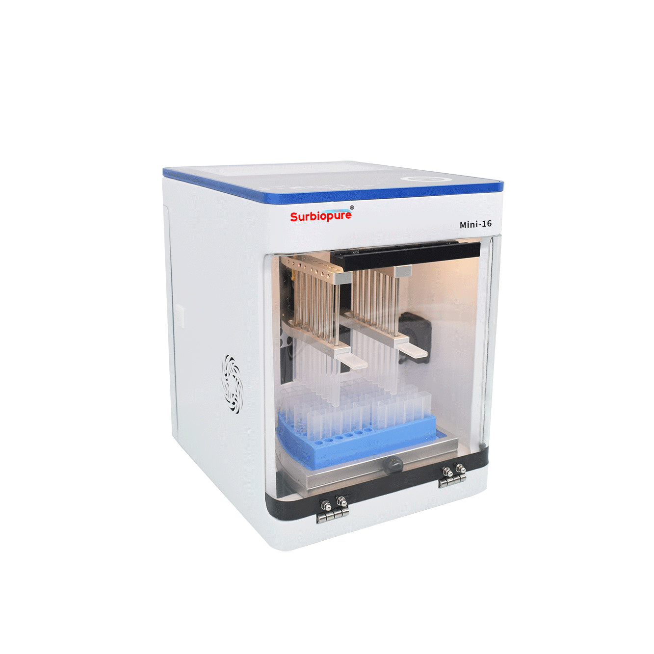 Mini-16全自動核酸提取儀采用磁珠分離技術,利用2.2ml深孔板、2.2ml試劑條、8聯磁棒套;搭配不同種類的磁珠法核酸提取試劑盒,最多可一次同時操作1-16個樣本,儀需9~45分鐘就可快速提取樣本中的DNA和RNA。 本系統通量靈活,可實現不同需求量的樣品提取,使用范圍廣;每次可同時提取1-16個樣品,配合單條試劑可實現1-8個樣品的任意通量同時提取;搭載7寸彩色觸控一體化操作界面,可自由編輯提取程序;配置負壓排氣系統和紫外燈消毒系統,避免氣溶膠污染,安全可靠;尤其適合零散樣本的現場核酸提取,配合實時熒光定量PCR系統,可輕松實現戶外現場樣本的即時檢測。Mini-16