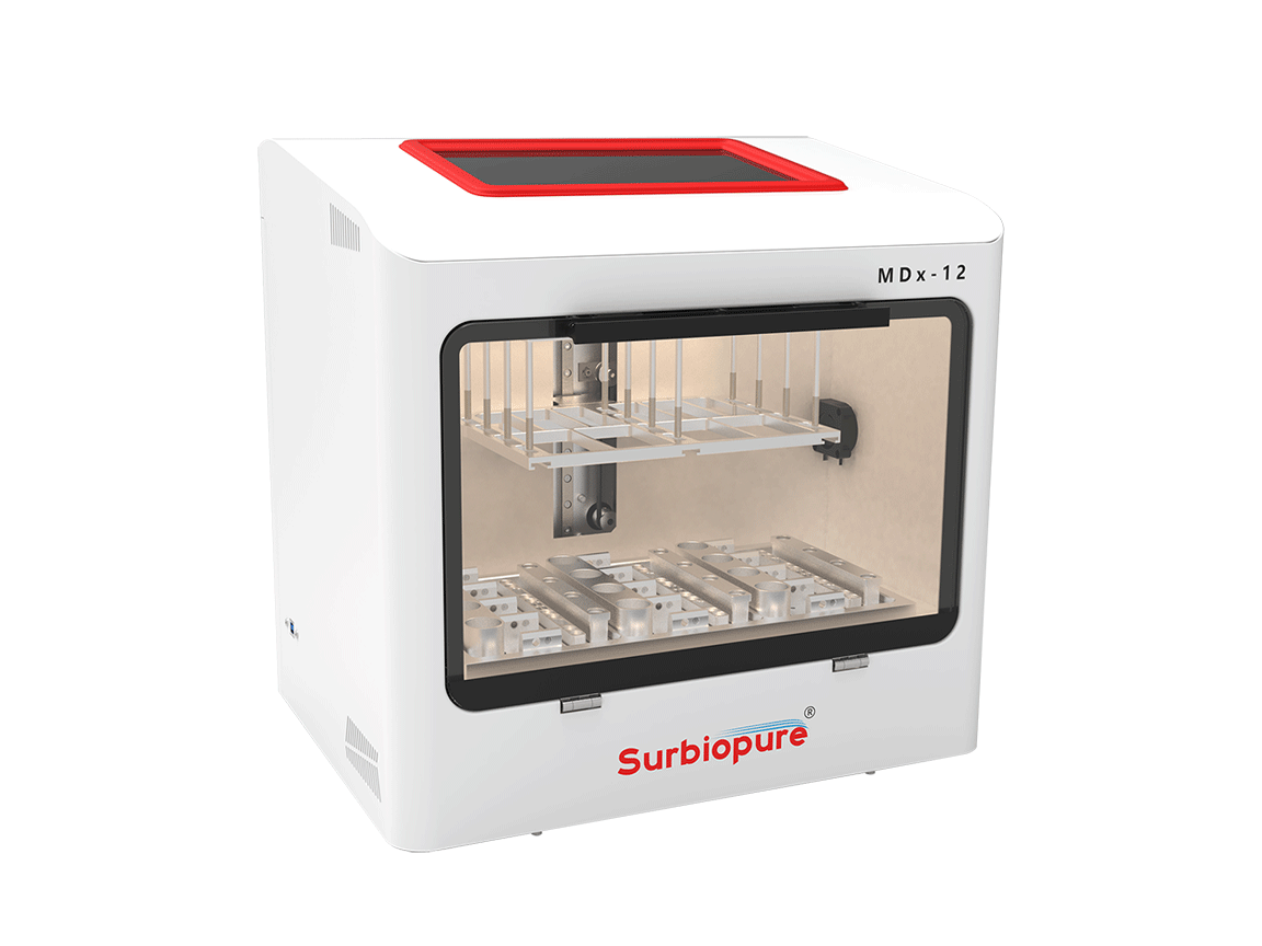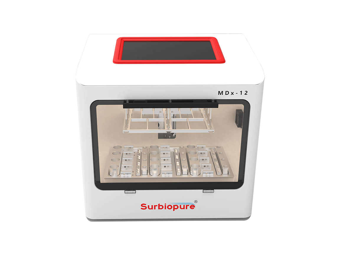 MDx-12全自動DNA甲基化一體機,采用核酸純化和亞硫酸鹽轉(zhuǎn)化一站式自動化操作,可有效減少操作誤差,提高工作效率,廣泛用于分子診斷、臨床檢驗、疾病防控和分子生物學(xué)研究等領(lǐng)域。該設(shè)備可高效處理血液、尿液、拭子、糞便等樣本類型,從中分離純化甲基化DNA并完成亞硫酸鹽轉(zhuǎn)化,其產(chǎn)物可直接用于下游甲基化檢測。